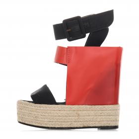 Patent Velvet Wedge Sandals